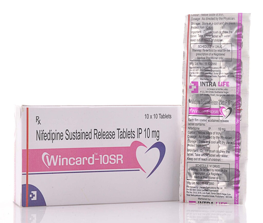 Nifedipine 10mg Sustained Release (SR) tablets are used primarily to treat hypertension (high blood pressure) and angina (chest pain). Nifedipine belongs to the calcium channel blocker class, which works by relaxing and widening blood vessels, improving blood flow and reducing the heart’s workload. The sustained release formulation ensures a gradual release of the drug, providing prolonged blood pressure control and angina relief throughout the day with once-daily dosing. This helps improve patient compliance and reduces the risk of side effects associated with peak drug levels.