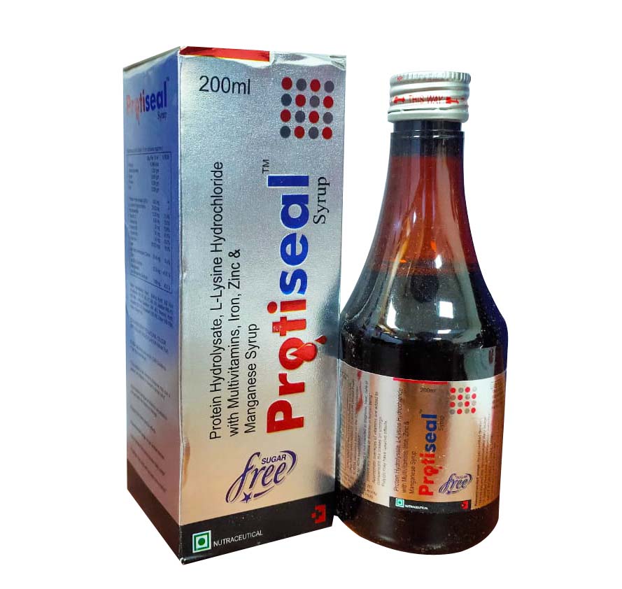 Protein Hydrolysate 100mg + L-Lysine 25mg + Nicotinamide 15mg + Vitamin C 6mg + Vitamin B1 1.20mg + Vitamin B2 1mg + VitaminB6 1mg + Folic Acid 150mcg+ Iron 23.46mg + Zinc 12.34mg + Manganese 5.50mg