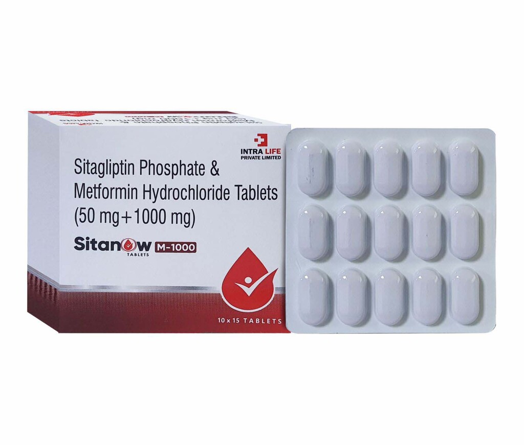 Sitagliptin 50mg combined with Metformin Hydrochloride IP 1000mg is a fixed-dose oral antidiabetic medication used to manage type 2 diabetes mellitus. This combination leverages two complementary mechanisms to improve glycemic control: