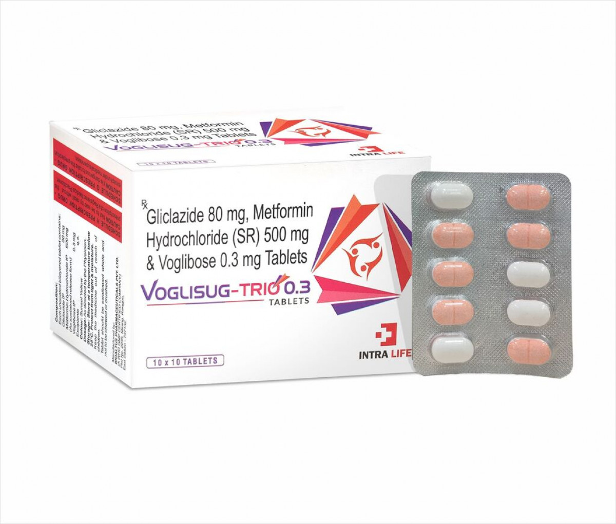 Gliclazide 80mg + Metformin HCl 500mg + Voglibose 0.3mg is a triple combination oral antidiabetic medication used in the management of type 2 diabetes mellitus. It targets multiple pathways to provide effective glycemic control:
