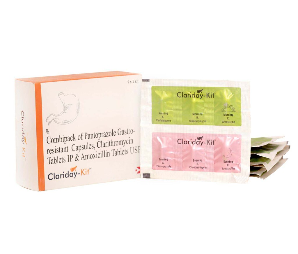Combikit of Clarithromycin 500mg + Pantoprazole 40mg + Amoxycillin 750mg