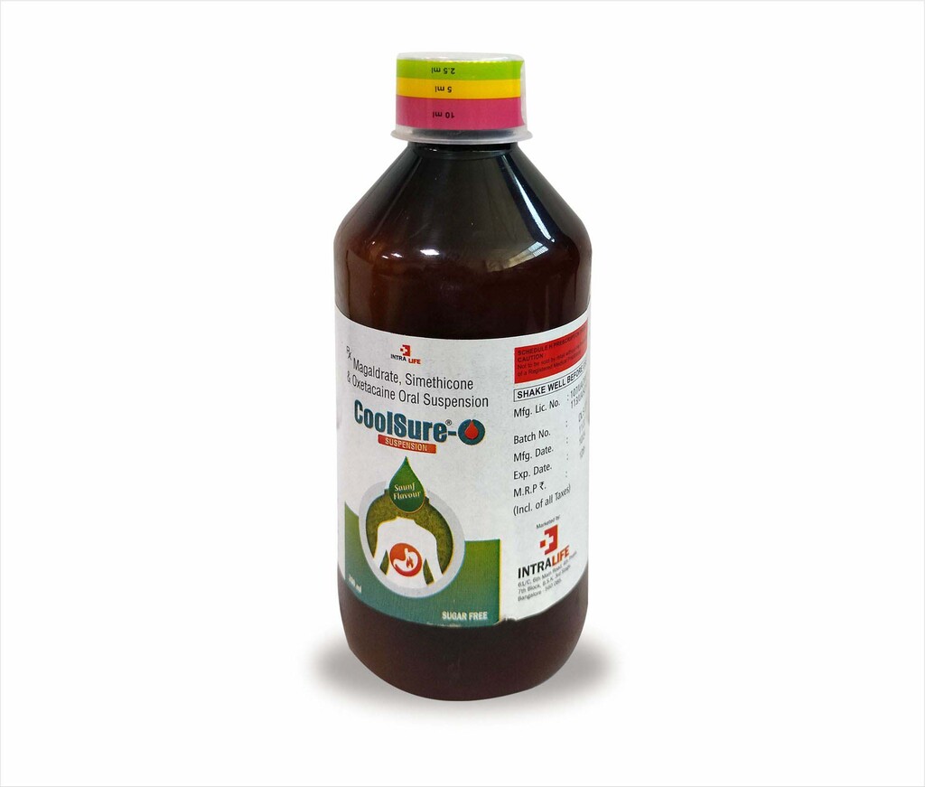 Magaldrate 540 mg + Simethicone 50 mg + Oxetacaine 10 mg is a powerful combination antacid formulation that provides fast and effective relief from acidity, heartburn, gas, and gastric pain.