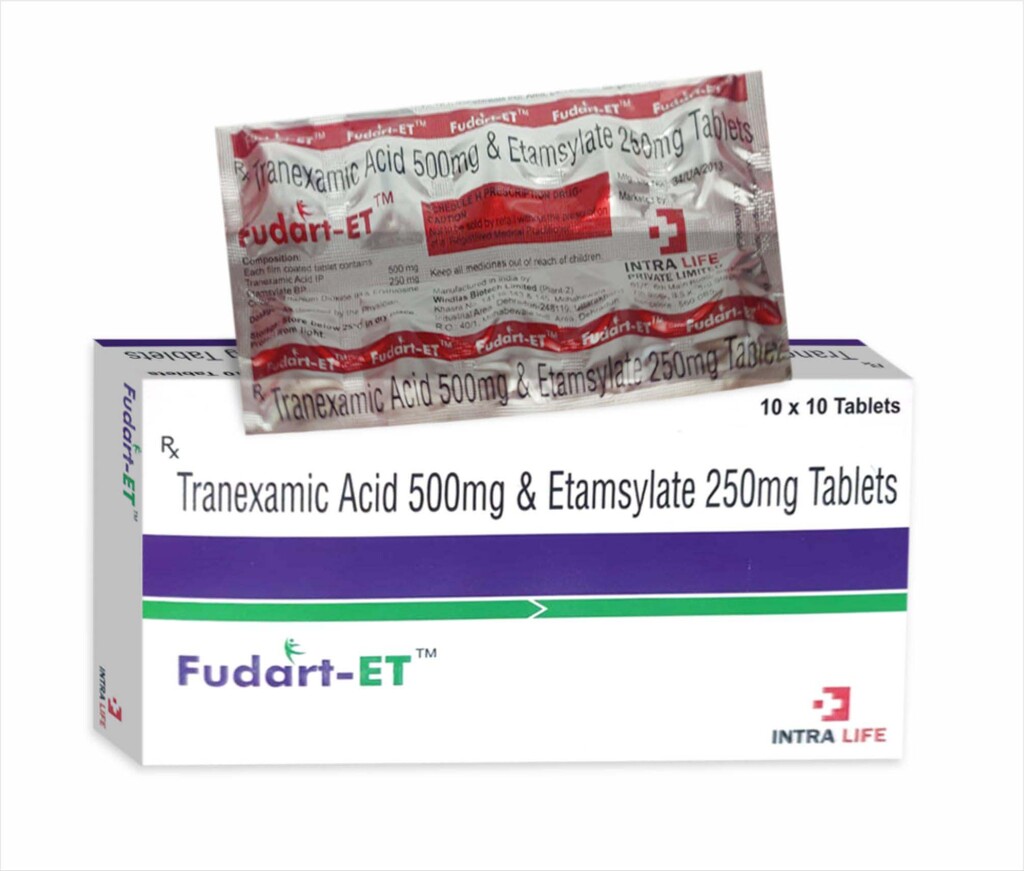 Typical Adult Dose: 1 tablet (containing Tranexamic Acid 500 mg + Ethamsylate 250 mg) 2-3 times daily or as prescribed Route: Oral Timing: With or after meals to reduce GI discomfort Duration: Usually short-term during active bleeding episodes as directed by a physician Follow your healthcare provider’s specific instructions for dose and duration.