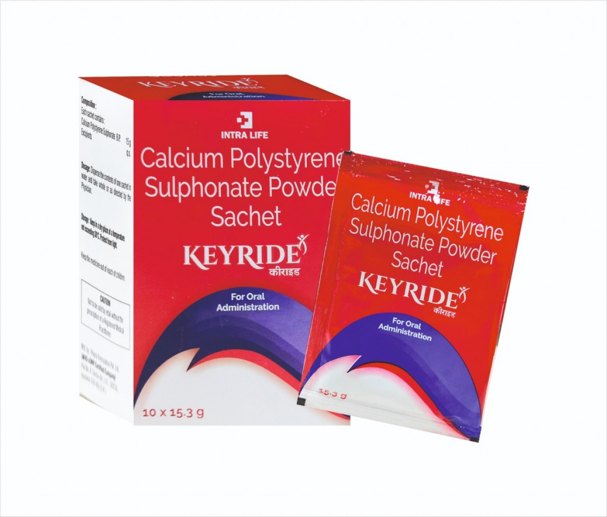Calcium Polystyrene Sulphonate is a cation-exchange resin used to treat hyperkalemia (high blood potassium levels). It works by exchanging calcium ions for potassium ions in the intestines, promoting potassium elimination through feces. Commonly used in patients with chronic kidney disease, it helps maintain electrolyte balance when the kidneys are unable to filter excess potassium effectively.