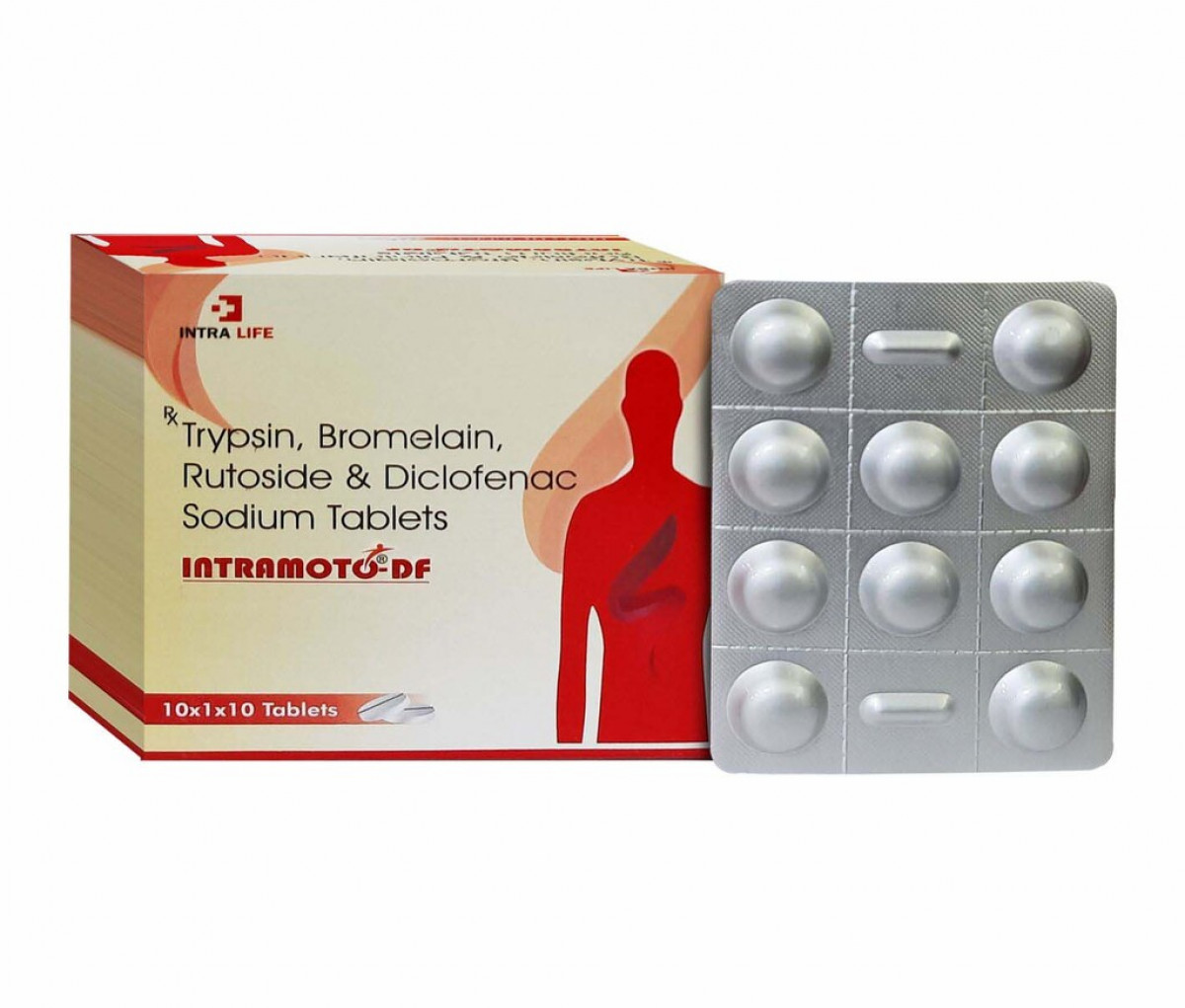 Trypsin Bromelain Rutoside Diclofenac tablets Enzyme anti-inflammatory pain relief Ortho and surgical injury medication Edema and swelling management Multi-action pain and inflammation tablet