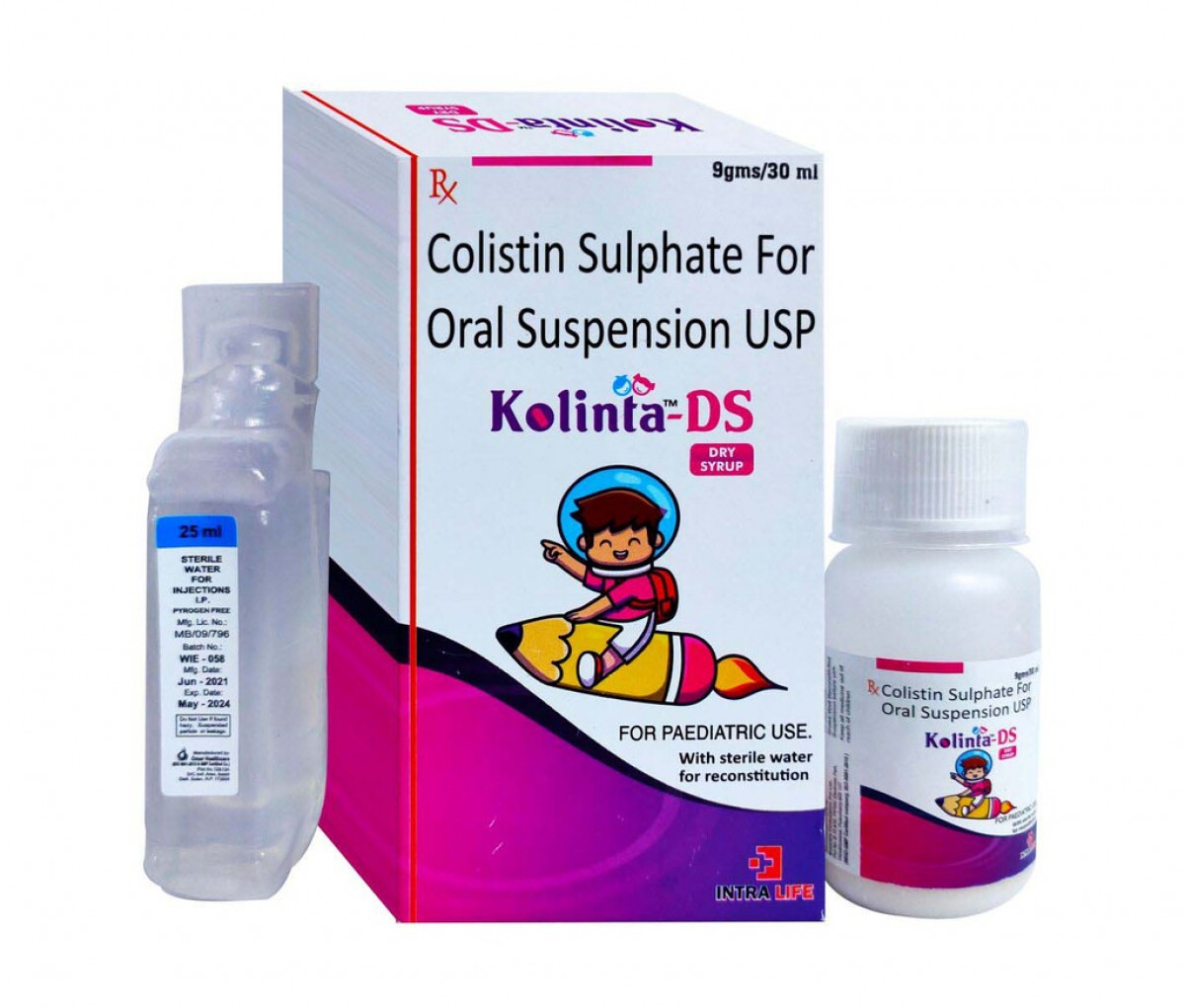 Colistin suspension for kids, pediatric colistin 25mg, MDR infection antibiotic, colistin oral antibiotic, colistin sulfate for resistant bacteria