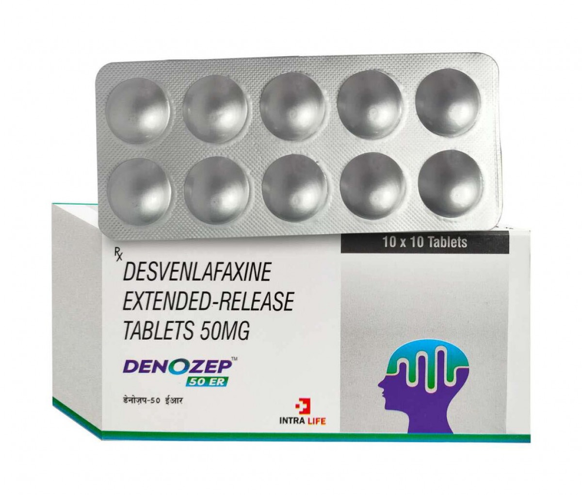 Desvenlafaxine 50 mg ER is an extended-release serotonin-norepinephrine reuptake inhibitor (SNRI) prescribed to treat major depressive disorder (MDD). It works by increasing serotonin and norepinephrine levels in the brain, which helps elevate mood, relieve anxiety, and improve overall mental well-being.