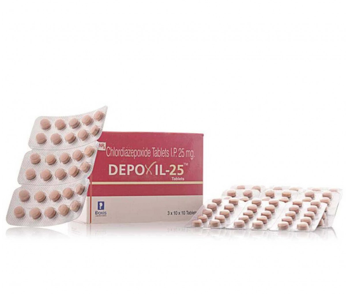 Chlordiazepoxide 25mg, benzodiazepine anxiety relief, alcohol withdrawal treatment, anti-anxiety drug, sedation medication, muscle relaxant