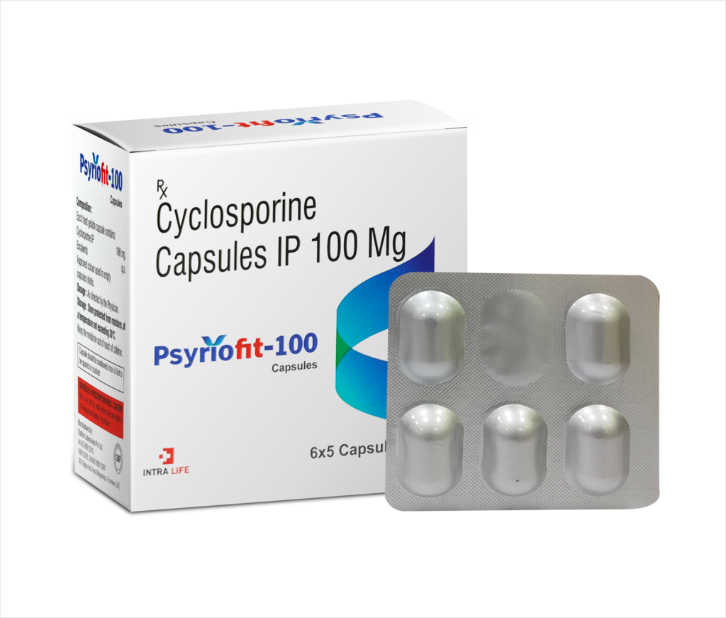 Cyclosporine IP 100 mg is a potent immunosuppressant used to prevent organ transplant rejection and treat various autoimmune conditions such as psoriasis, rheumatoid arthritis, and atopic dermatitis. It works by inhibiting the activity of T-cells in the immune system, reducing inflammation and immune response. Cyclosporine helps maintain graft survival post-transplant and manages chronic autoimmune diseases by controlling overactive immune activity.