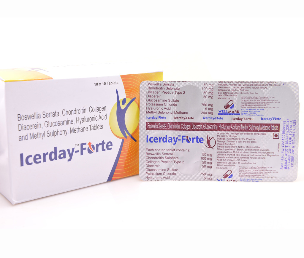 Boswellia Serrata 50mg + Chondroitin Sulfate 100mg + Collagen Peptide Type-2 50mg + Diacerein 50mg + Glucosamine Sulfate 750mg+Hyaluronic Acid 5mg Methyl Sulphonyl Methane 200mg