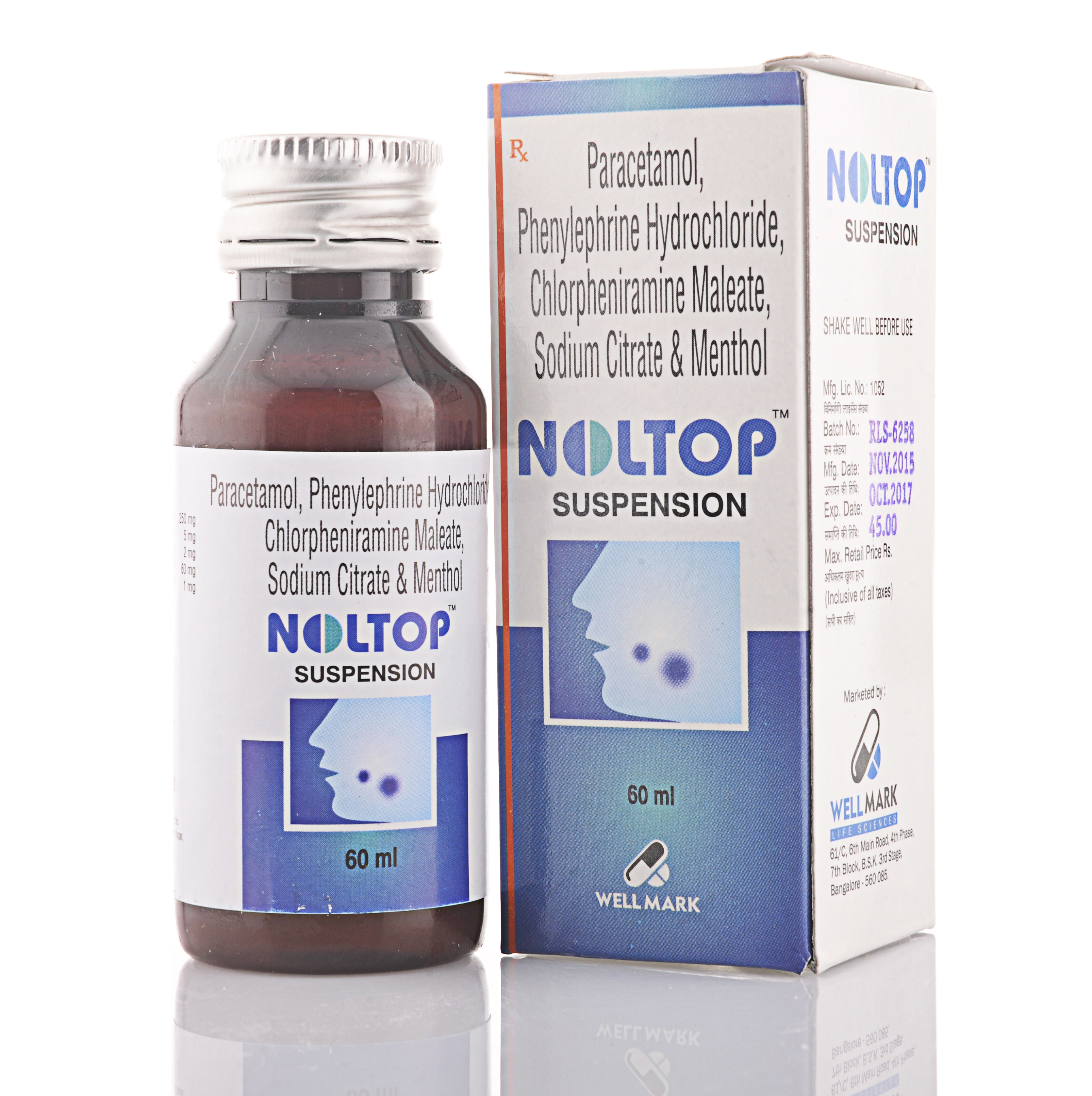 Paracetamol 250mg + Phenylephrine HCI 5mg + CPM 2mg + Sodium Citrate 60mg + Menthol 1mg